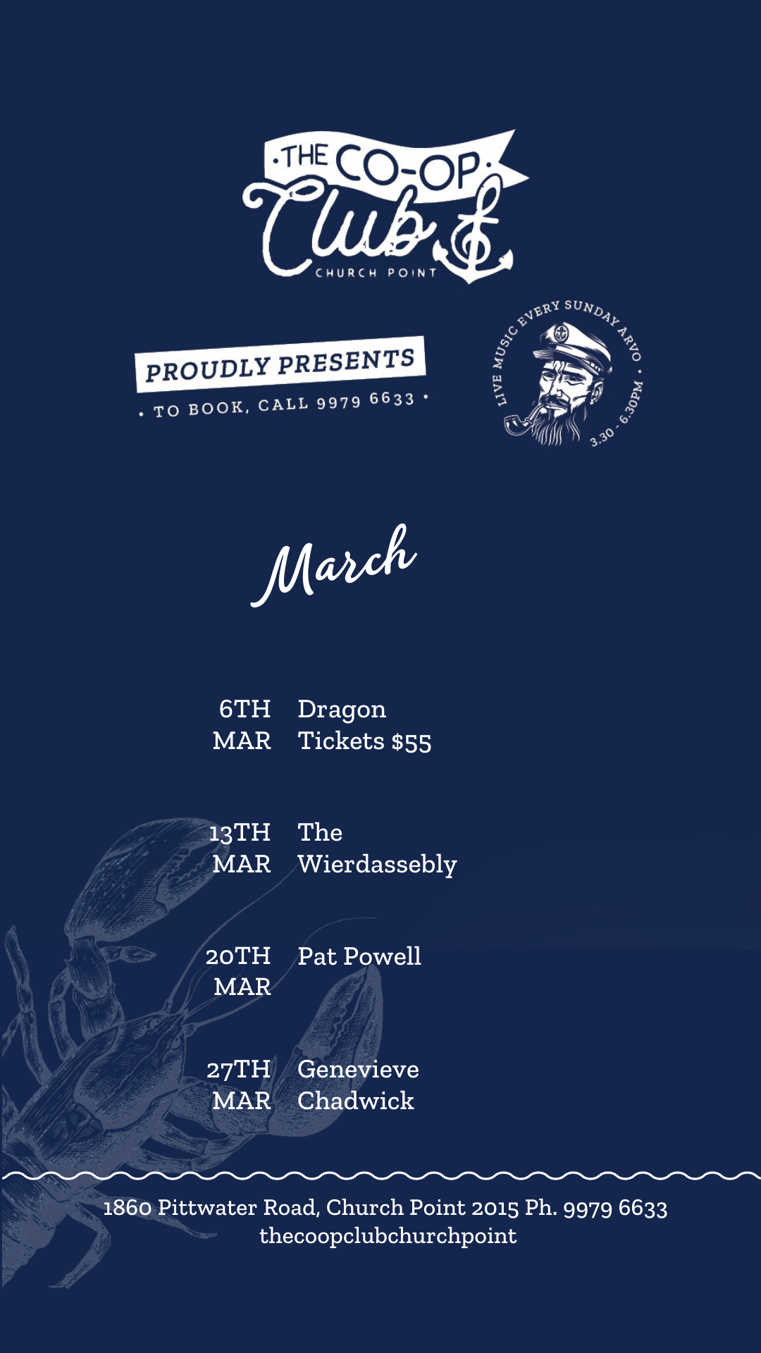 MUSIC IS BACK! THE CO-OP CLUB: ARTISTS MARCH