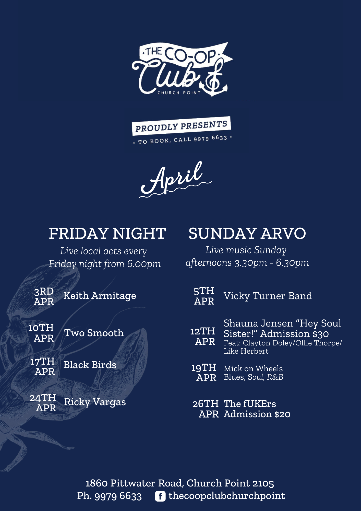 LIVE MUSIC: April at the Co-Op Club LIVE MUSIC AT THE CO-OP 7 Feb Written By Monique Macri BOOK ONLINE Monique Macri